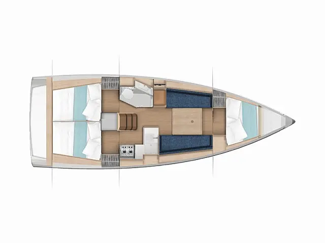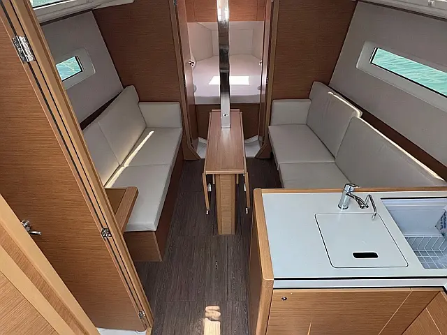 Kühlschrank, Elektrische Winch (Segel), Cockpit-Kissen, Bimini, Sprayhood, Beiboot, Badeplattform, Fäkalientank, Außenbordmotor, Heizung, Lautsprecher im Cockpit, Inverter Bugstrahlruder Lazy bag Stand up paddle