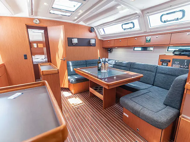 Sprayhood, Bimini, Lautsprecher im Cockpit, Fäkalientank, Kühlschrank, Badeplattform, Cockpit-Kissen, Elektrische Toilette Kartenplotter, Bugstrahlruder, Autopilot Radio-CD Player