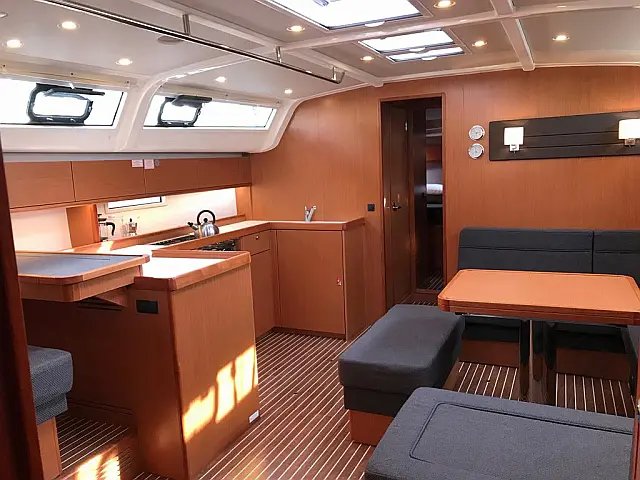 Sprayhood, Bimini, Lautsprecher im Cockpit, Fäkalientank, Kühlschrank, Badeplattform, Cockpit-Kissen, Elektrische Toilette Kartenplotter, Bugstrahlruder, Autopilot Radio-CD Player