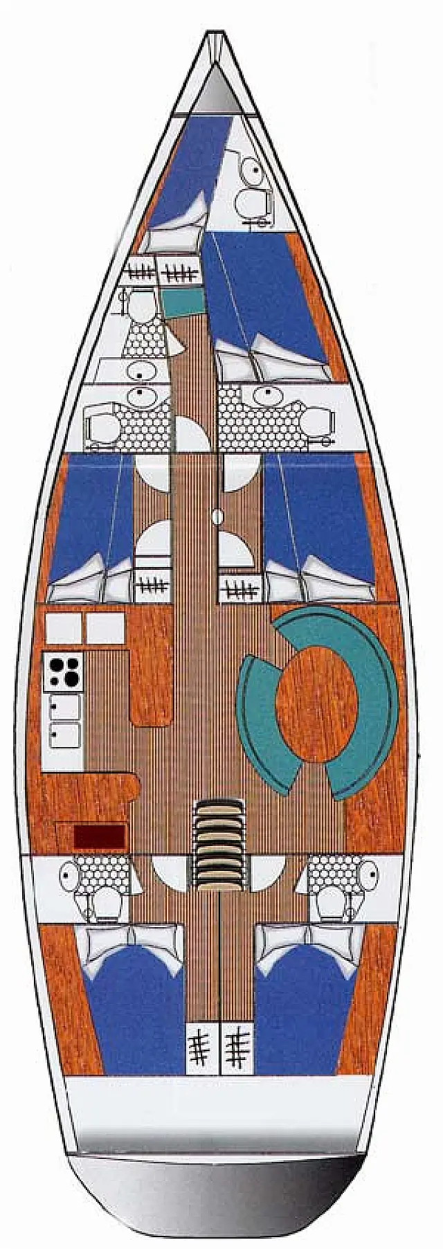Autopilot, Bugstrahlruder Beiboot, Lautsprecher im Cockpit, Klimaanlage, Heizung, Bimini, Teakdeck, Kühlschrank TV