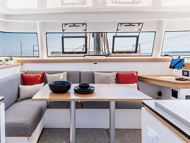 Klimaanlage, Bimini, Cockpit-Kissen, Lautsprecher im Cockpit, Beiboot, Kühlschrank, Generator, Heizung, Fäkalientank, Inverter, Außenbordmotor, Solar-Panele, Teak Cockpit, Wi-Fi und Internet Autopilot, Kartenplotter TV