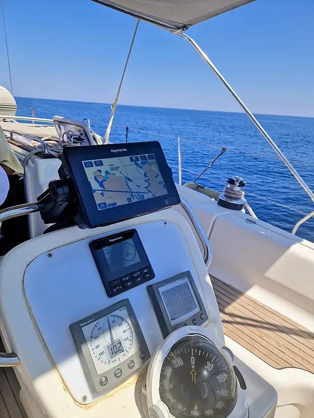 Kaffeemaschine, Kühlschrank, Solar-Panele, Bimini, Cockpit-Kissen, Lautsprecher im Cockpit, Beiboot, Außenbordmotor Schnorchelausrüstung Autopilot, Kartenplotter