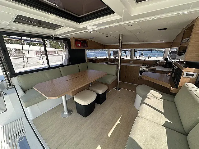 Cockpit-Kissen, Solar-Panele, Wassermacher, Badeplattform, Bimini, Beiboot, Außenbordmotor, Sprayhood, Kühlschrank, Elektrische Toilette, Lautsprecher im Cockpit Lazy bag, Lazy jack Autopilot, Kartenplotter