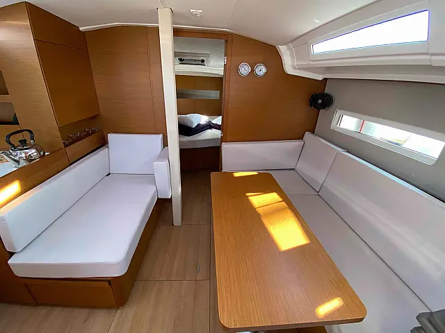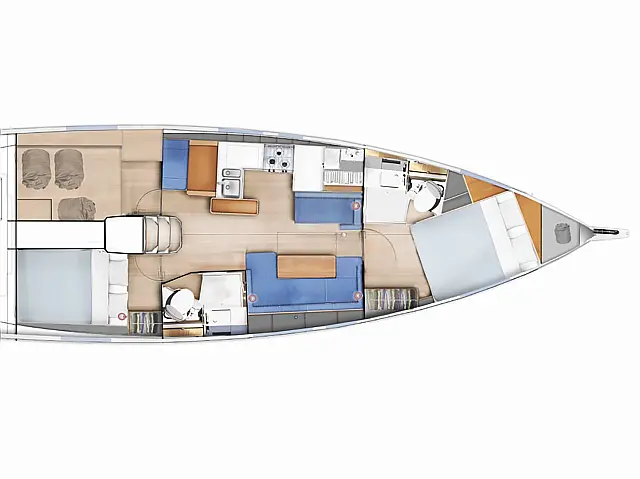 Cockpit-Kissen, Elektrische Winch (Segel), Solar-Panele, Badeplattform, Bimini, Beiboot, Sprayhood, Teak Cockpit, Kühlschrank, Umwandelbarer Tisch, Elektrische Toilette, Lautsprecher im Cockpit Autopilot, Bugstrahlruder, Kartenplotter, Kartenplotter im Cockpit
