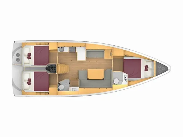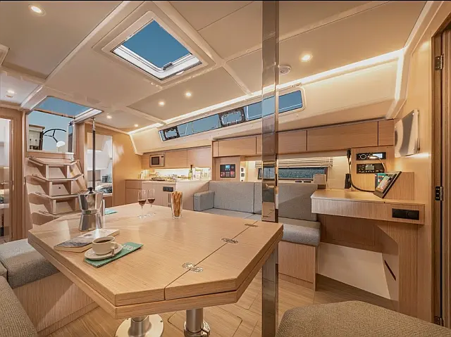 Cockpit-Kissen, Bimini, Beiboot, Sprayhood, Kühlschrank, Elektrische Toilette, Lautsprecher im Cockpit Autopilot, Bugstrahlruder, Kartenplotter