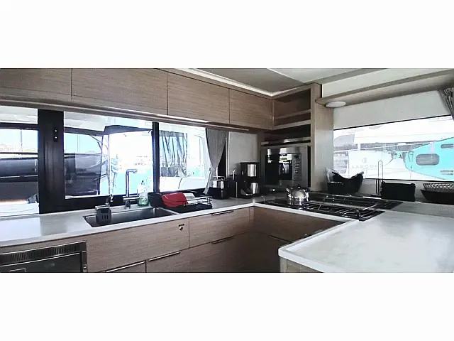 Stand up paddle, Snorkeling equipment Dinghy, Outboard engine, Bimini, Cockpit cushions, Teak Cockpit, Electric winches, Air condition, Refrigerator, Electric toilet, Coffee maker, Generator, Hydraulic gangway, Ice maker, Inverter, Water maker, Wi-Fi & Internet Lazy jack Chart plotter, Autopilot