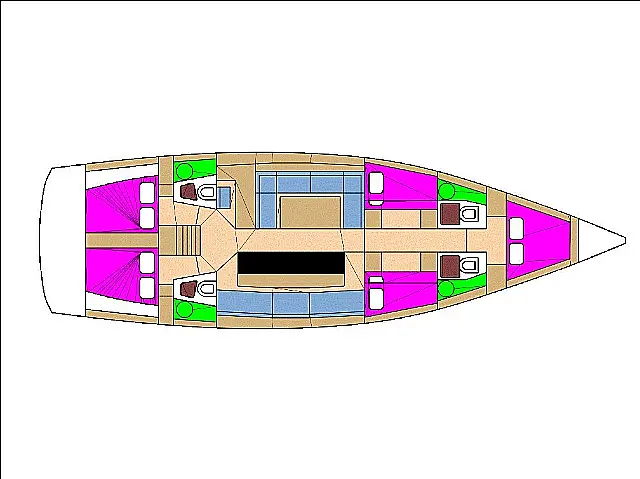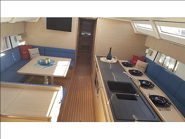 Heating, Teak deck, Cockpit speakers, Teak Cockpit, Air condition, Refrigerator, Generator, Sprayhood, Holding tank, Electric toilet, Outboard engine, Dinghy Bow thruster, Chart plotter in cockpit TV, Radio-CD player