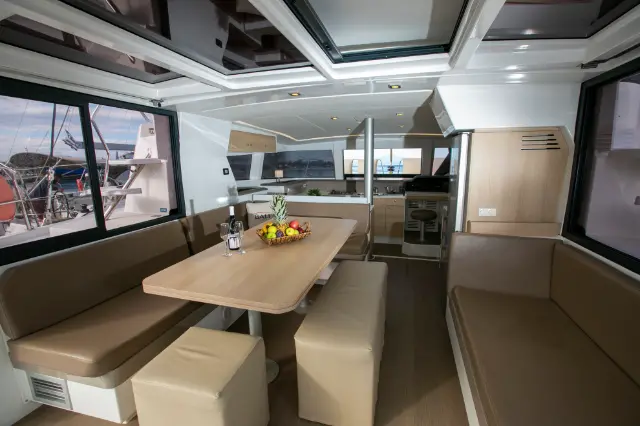 Refrigerator, Air condition, Cockpit speakers, Generator, Water maker, Solar Panels, Electric toilet, Electric winches, Sprayhood, Cockpit cushions, Dinghy, Bimini Radio-CD player Autopilot, Chart plotter in cockpit