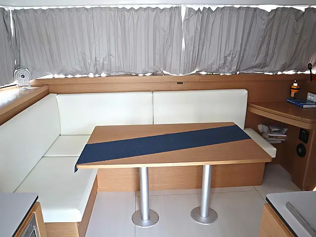 Bimini, Cockpit cushions, Electric toilet, Dinghy, Refrigerator Bow thruster, Autopilot, Chart plotter Lazy bag, Lazy jack