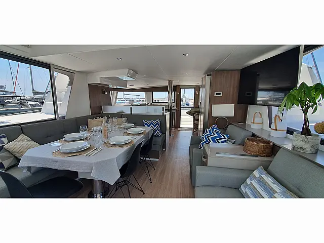 Inverter, Cockpit cushions, Electric toilet, Bimini, Water maker, Solar Panels, Cockpit speakers, Air condition, Electric winches Chart plotter, Autopilot TV, Snorkeling equipment, Stand up paddle Lazy bag, Lazy jack