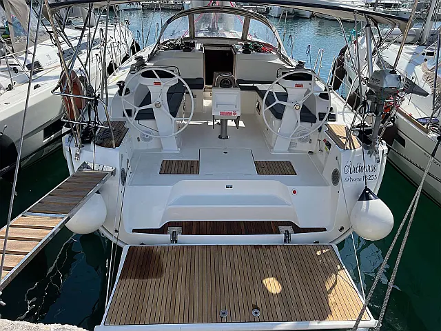 Sprayhood, Bimini, Cockpit speakers, Holding tank, Refrigerator, Cockpit cushions, Electric toilet Chart plotter, Bow thruster, Autopilot Radio-CD player