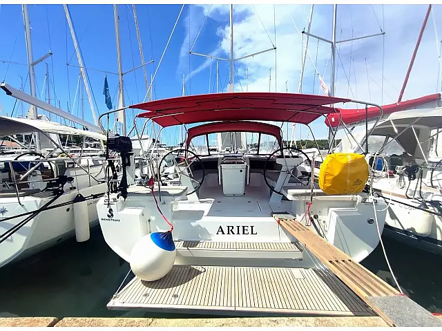 Bow thruster, Autopilot, Chart plotter Holding tank, Heating, Sprayhood, Bimini, Cockpit speakers, Cockpit cushions Radio-CD player