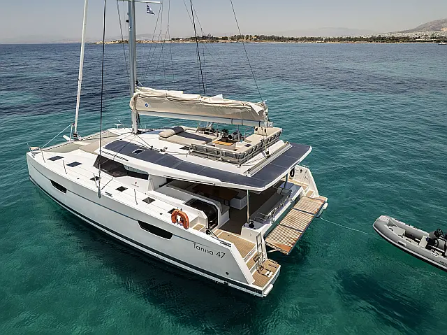 Lazy bag Bimini, Sprayhood, Dinghy, Outboard engine, Air condition, Electric toilet, Generator, Solar Panels, Water maker, Washer/Dryer, Dishwasher, Refrigerator, Coffee maker, Cockpit cushions, Inverter Autopilot, Chart plotter in cockpit, Radar Underwater lights TV, Snorkeling equipment