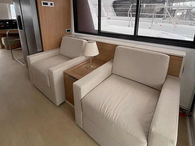 Coffee maker, Electric toilet, Inverter, Generator, Air condition, Sprayhood, Electric winches, Dinghy, Solar Panels, Refrigerator, Teak deck, Heating, Hydraulic gangway, Water maker, Dishwasher Autopilot, Chart plotter, Chart plotter in cockpit Lazy bag