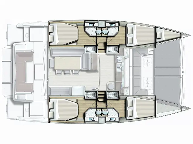 41 - 44ft catamaran: End cleaning - Start Pack incl.: 370.00 € per booking, Security Deposit* Valid ONLY for insured skippers OR mandatory damage waiver : refundable : € 1000.00 & non-refundable deductible : 400.00 € per booking