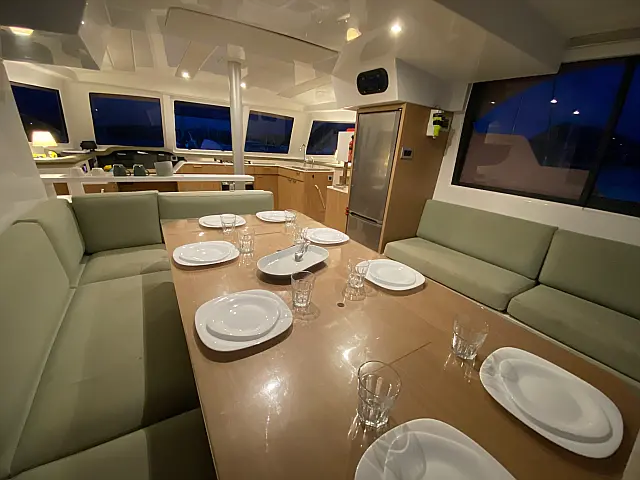Bedding for 4 cabins (8 people - sheets, bath towels): 180.00 € per booking, Diving inspection: 25.00 € per booking, Administrative fees: 86.50 € per booking, End-of-charter cleaning: 200.00 € per booking, Berth (departure and return): 100.00 € per booking