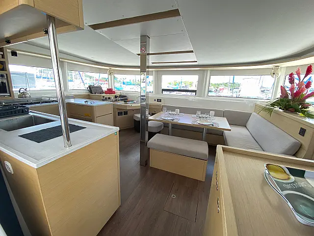 Bedding for 4 cabins (8 people - sheets, bath towels): 180.00 € per booking, Diving inspection: 25.00 € per booking, Administrative fees: 86.50 € per booking, End-of-charter cleaning: 200.00 € per booking, Berth (departure and return): 100.00 € per booking