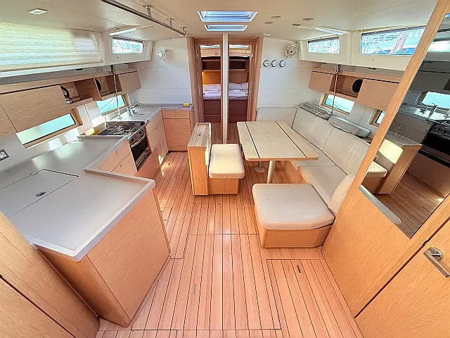 Hladnjak, Pomoćni čamac, Grijanje, Inverter, Solarni paneli, Električni WC, Bimini, Platforma za plivanje, Jastuci u kokpitu, Sprayhood Pramčani propeler, Autopilot, Ploter karata Radio-CD player