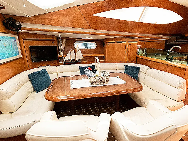Tikovina u kokpitu, Solarni paneli, Sprayhood, Bimini, Zvučnici u kokpitu, Paluba od tikovine, Crni tank, Pomoćni čamac, Vanbrodski motor, Hladnjak, Inverter Pramčani propeler, Ploter karata, Autopilot TV