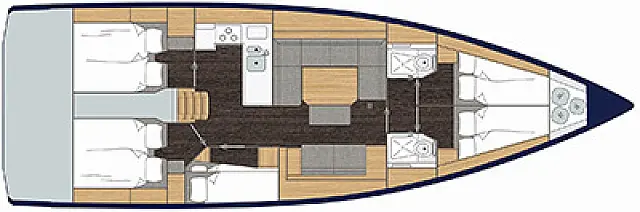 Sprayhood, Bimini, Jastuci u kokpitu, Solarni paneli, Platforma za plivanje, Pomoćni čamac, Hladnjak, Vanbrodski motor, Električni WC Pramčani propeler, Autopilot, Ploter karata TV