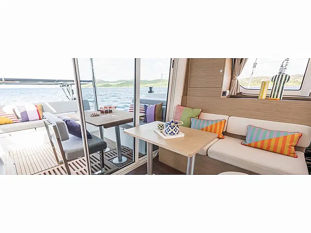 Jastuci u kokpitu, Zvučnici u kokpitu, Inverter, Generator, Električni WC, Klima, Desalinizator Autopilot, Ploter karata