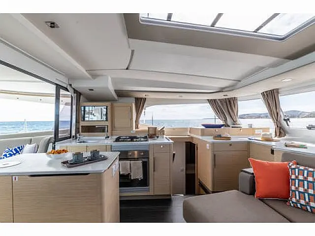 Hladnjak, Bimini, Jastuci u kokpitu, Solarni paneli, Desalinizator, Pomoćni čamac, Vanbrodski motor Autopilot Lazy jack