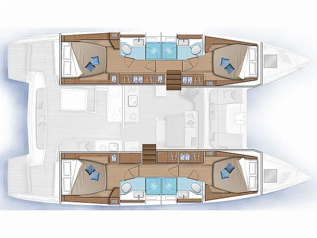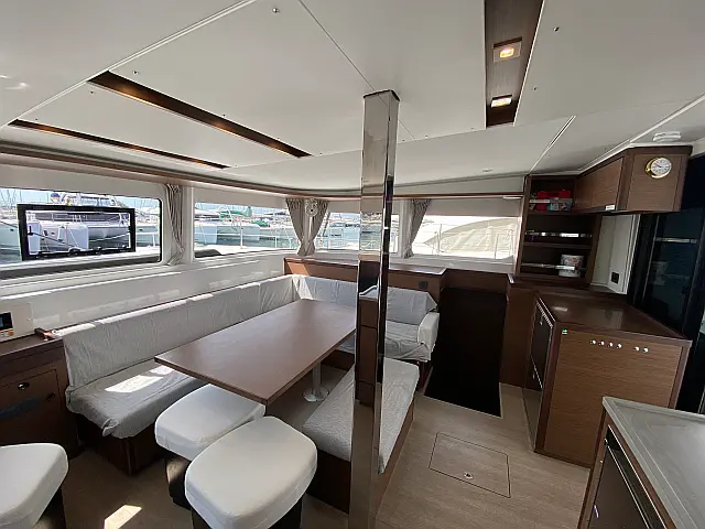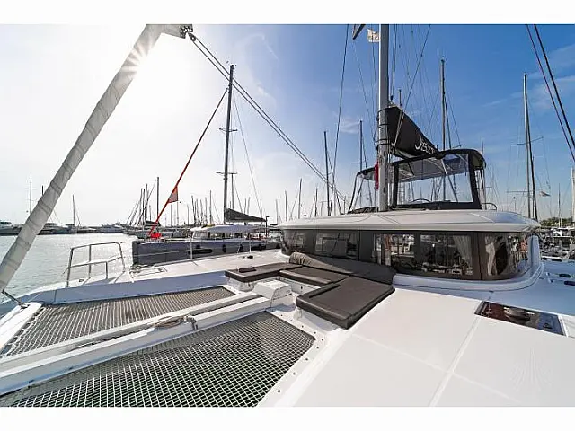 Pomoćni čamac, Klima, Jastuci u kokpitu, Solarni paneli, Bimini, Vanbrodski motor, Generator Ploter karata, Autopilot Lazy jack, Lazy bag