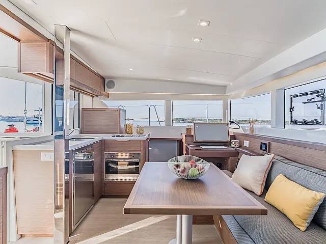 Klima, Generator, Desalinizator, Grijanje, Aparat za kavu, Hladnjak, Bimini, Jastuci u kokpitu, Pomoćni čamac, Vanbrodski motor, Sprayhood, Električni WC Oprema za ronjenje na dah Lazy jack, Lazy bag