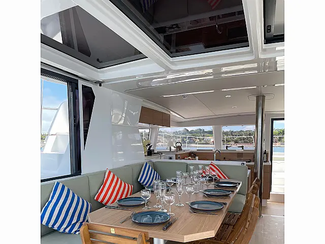 Lazy bag, Lazy jack Hladnjak, Inverter, Jastuci u kokpitu, Električna vitla, Desalinizator, Roštilj u kokpitu, Električni WC Autopilot, Ploter karata