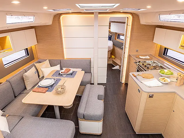 Sprayhood, Bimini, Hladnjak, Tikovina u kokpitu, Zvučnici u kokpitu, Inverter, Pomoćni čamac, Platforma za plivanje Autopilot, Ploter karata, Ploter karata u kokpitu Radio-CD player