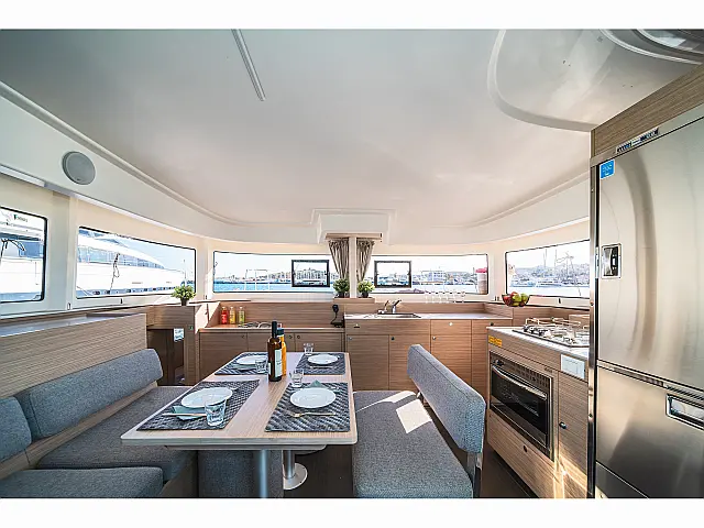 Jastuci u kokpitu, Sprayhood, Bimini, Hladnjak, Zvučnici u kokpitu, Solarni paneli, Inverter, Električni WC, Pomoćni čamac Lazy jack, Lazy bag Radio-CD player, Oprema za ronjenje na dah Ploter karata u kokpitu, Autopilot