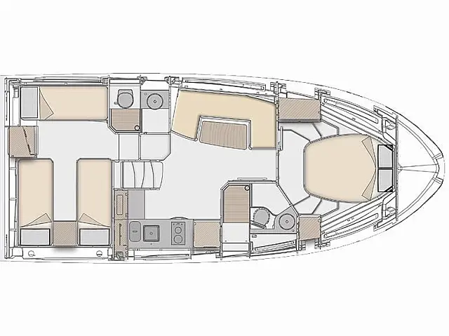 Pomoćni čamac, Hladnjak, Tikovina u kokpitu, Roštilj u kokpitu, Klima, Generator Radio-CD player Radar, Pramčani propeler