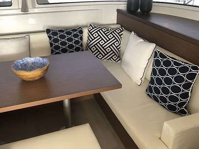 Kühlschrank, Klimaanlage, Elektrische Toilette, Elektrische Winch (Segel), Kaffeemaschine, Generator, Hydraulische Gangway, Eismaschine, Außenbordmotor, Beiboot, Wassermacher Kartenplotter im Cockpit Radio-CD Player, Stand up paddle, TV