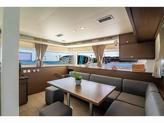 Cockpit-Kissen, Lautsprecher im Cockpit, Kaffeemaschine, Inverter, Außenbordmotor, Generator, Sprayhood, Teak Cockpit, Kühlschrank, Bimini, Elektrische Toilette, Klimaanlage, Wassermacher, Hydraulische Gangway Autopilot, Kartenplotter, Radar Stand up paddle, Schnorchelausrüstung
