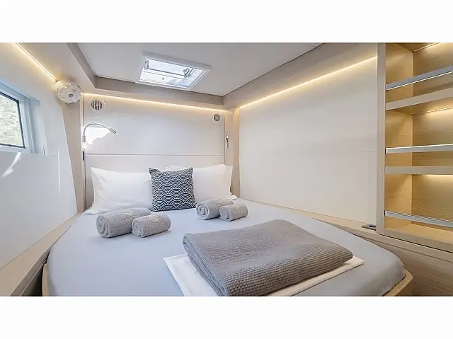 Klimaanlage, Generator, Wassermacher, Bimini, Cockpit-Kissen, Lautsprecher im Cockpit, Kaffeemaschine, Beiboot, Elektrische Toilette, Elektrische Winch (Segel), Kühlschrank, Heizung, Eismaschine, Außenbordmotor, Sprayhood Autopilot, Kartenplotter Lazy jack Stand up paddle, Schnorchelausrüstung, TV