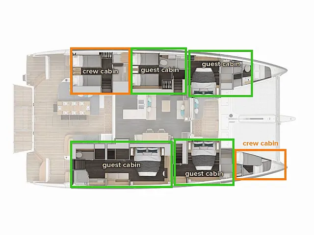 Komfort Paket d 2026 (includes Finale cleaning, bed sheets, bath & hand towels, beach towels, tea towels, shampoo & shower gel und soap, dish soap & sponge, garbage bags, toilet paper, wine): 720,00 € pro Buchung, Apa Kaution (advance Provisioning allowance): 8.000,00 € pro Woche, Croatian Kurtaxe (1.33 € pro Person / night): 1,33 € pro Person/Nacht, Stewardess: 0,00 € pro Nacht, Chef: 0,00 € pro Nacht, Captain: 0,00 € pro Nacht