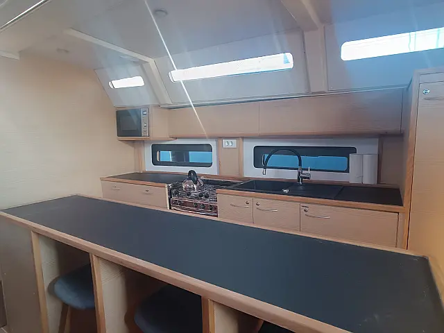 Außenbordmotor, Beiboot, Kühlschrank, Sprayhood, Teak Cockpit, Lautsprecher im Cockpit, Klimaanlage, Generator, Heizung, Inverter, Solar-Panele TV Autopilot, Bugstrahlruder, Kartenplotter