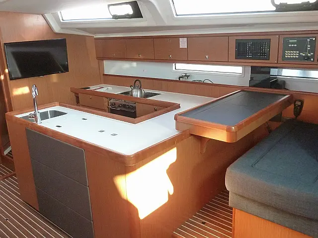 Cockpit-Kissen, Klimaanlage, Generator, Bimini, Beiboot, Außenbordmotor, Sprayhood, Kühlschrank, Lautsprecher im Cockpit Autopilot, Bugstrahlruder, Kartenplotter