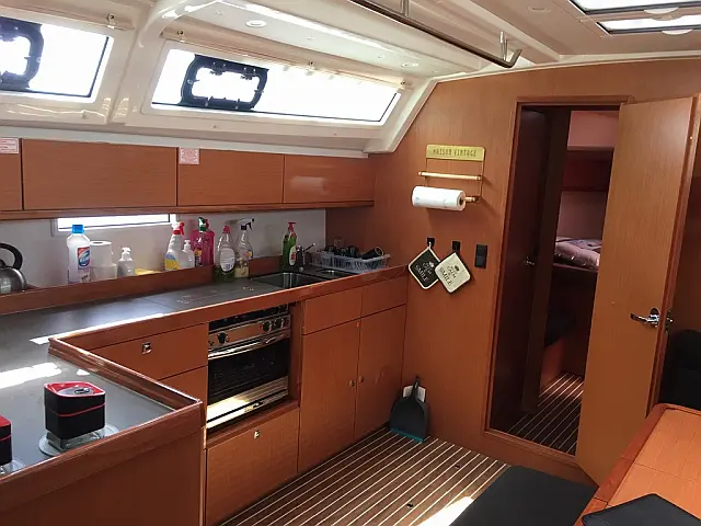 Cockpit-Kissen, Solar-Panele, Bimini, Beiboot, Sprayhood, Kühlschrank, Elektrische Toilette, Lautsprecher im Cockpit Autopilot, Bugstrahlruder, Kartenplotter, Kartenplotter im Cockpit TV