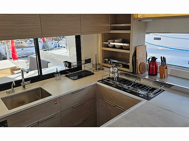 Klimaanlage, Flybridge, Wassermacher, Generator, Beiboot, Inverter, Elektrische Winch (Segel), Außenbordmotor, Elektrische Toilette, Bimini Autopilot Lazy bag