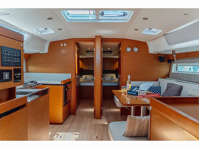 Dinghy, Outboard engine, Bimini, Cockpit cushions, Sprayhood, Teak Cockpit, Refrigerator Lazy jack Snorkeling equipment Chart plotter, Bow thruster, Autopilot