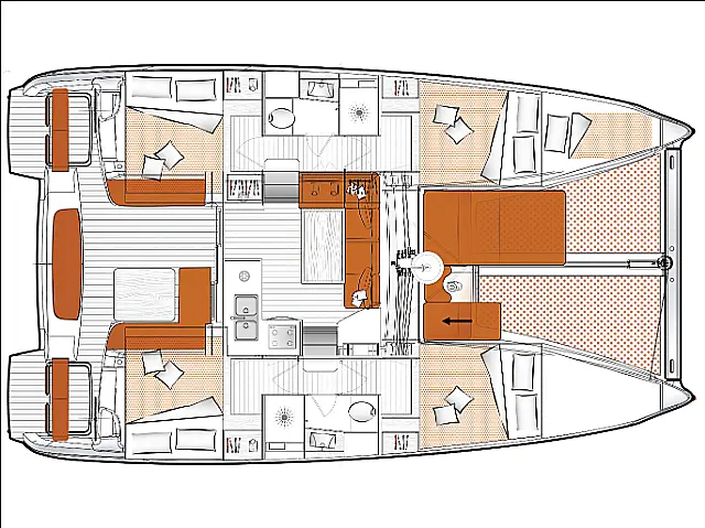 | Berths: | 11 8 in cabins + 2 in salon + skipper's cabin |
