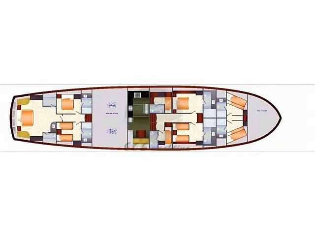 | Cabins: | 5 5 cabins: 1 Master, 2 Double, 1 Twin all en suite. |