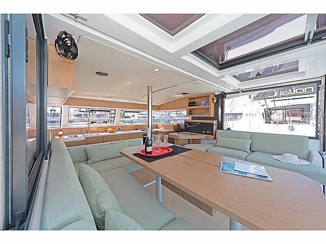 Lazy jack, Lazy bag Sprayhood, Bimini, Barbecue grill in cockpit, Dinghy, Wi-Fi & Internet, Electric winches, Inverter, Electric toilet, Refrigerator, Cockpit cushions, Solar Panels, Cockpit speakers Radio-CD player, Stand up paddle, Snorkeling equipment Chart plotter in cockpit, Chart plotter, Autopilot