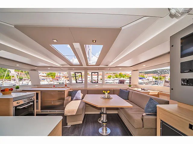 Lazy jack, Lazy bag Bimini, Barbecue grill in cockpit, Holding tank, Air condition, Generator, Water maker, Inverter, Dinghy, Wi-Fi & Internet, Electric toilet, Refrigerator, Flybridge, Cockpit speakers, Cockpit cushions, Solar Panels Chart plotter in cockpit, Chart plotter, Autopilot Stand up paddle, Snorkeling equipment