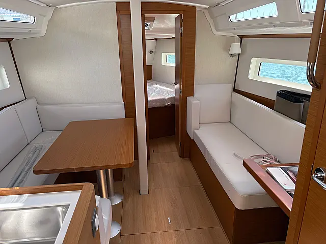 Electric winches, Teak deck, Electric toilet, Cockpit speakers, Bimini, Sprayhood Autopilot, Chart plotter in cockpit, Bow thruster Radio-CD player