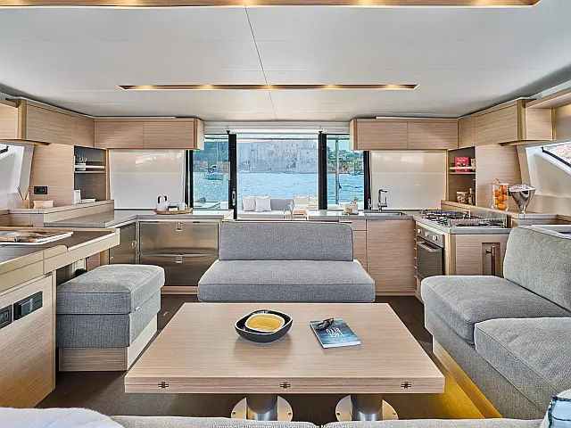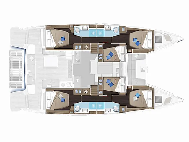 Refrigerator, Coffee maker, Ice maker, Air condition, Electric winches, Inverter, Heating, Generator, Water maker, Bimini, Flybridge, Barbecue grill in cockpit, Outboard engine, Teak deck Lazy bag Chart plotter, Chart plotter in cockpit Snorkeling equipment