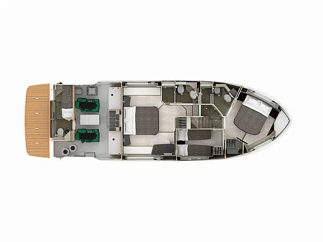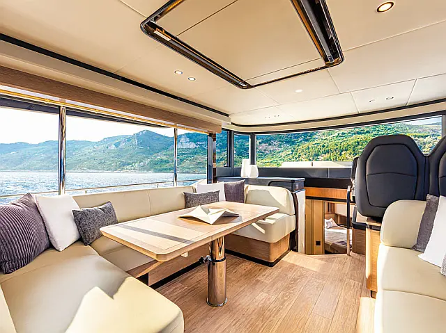Flybridge, Washer/Dryer, Dishwasher, Electric toilet, Refrigerator, Air condition, Inverter, Water maker, Generator, Ice maker, Hydraulic gangway, Wi-Fi & Internet Autopilot, Radar, Chart plotter Radio-CD player