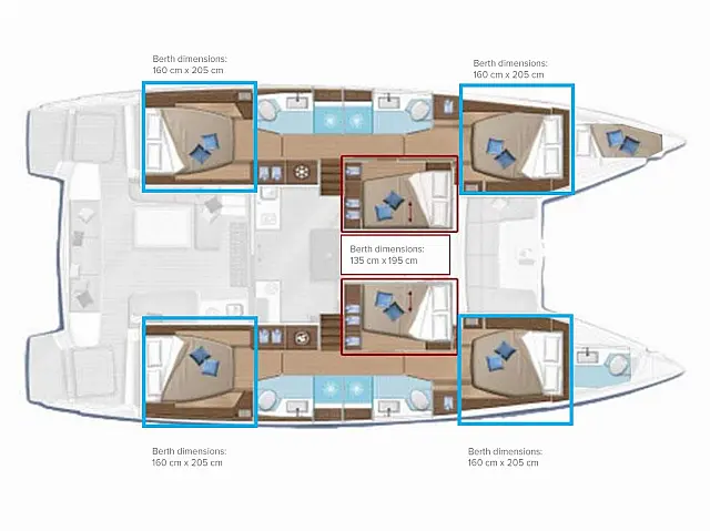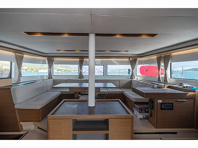 Pomoćni čamac, Jastuci u kokpitu, Tikovina u kokpitu, Električna vitla, Klima, Hladnjak, Generator, Inverter, Desalinizator, Aparat za kavu, Perilica posuđa, Ledomat, Bimini, Wi-Fi i internet, Zvučnici u kokpitu Autopilot Lazy jack Stand up paddle, Radio-CD player, TV, Oprema za ronjenje na dah