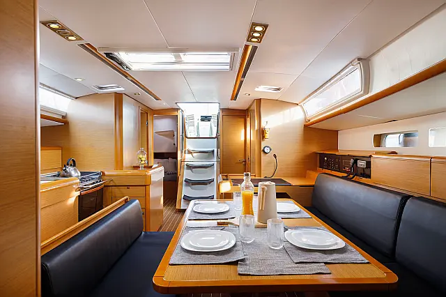 Električni WC, Solarni paneli, Bimini, Jastuci u kokpitu, Sprayhood, Zvučnici u kokpitu, Pomoćni čamac, Vanbrodski motor, Aparat za kavu, Hladnjak Ploter karata u kokpitu, Autopilot, Pramčani propeler Oprema za ronjenje na dah